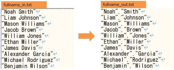 If the data is output with the first and last names divided, as in the processing
