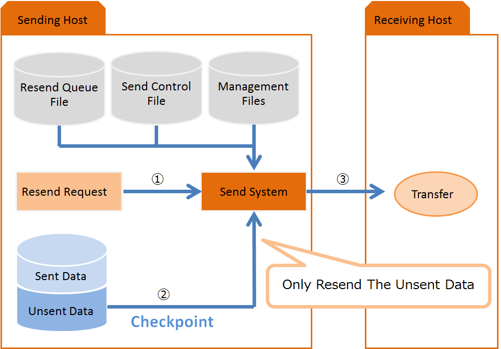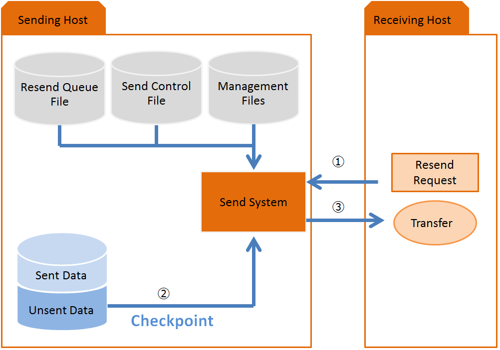 Now, we will explain how Checkpoint Resend File works by using the example shown in the following diagram.