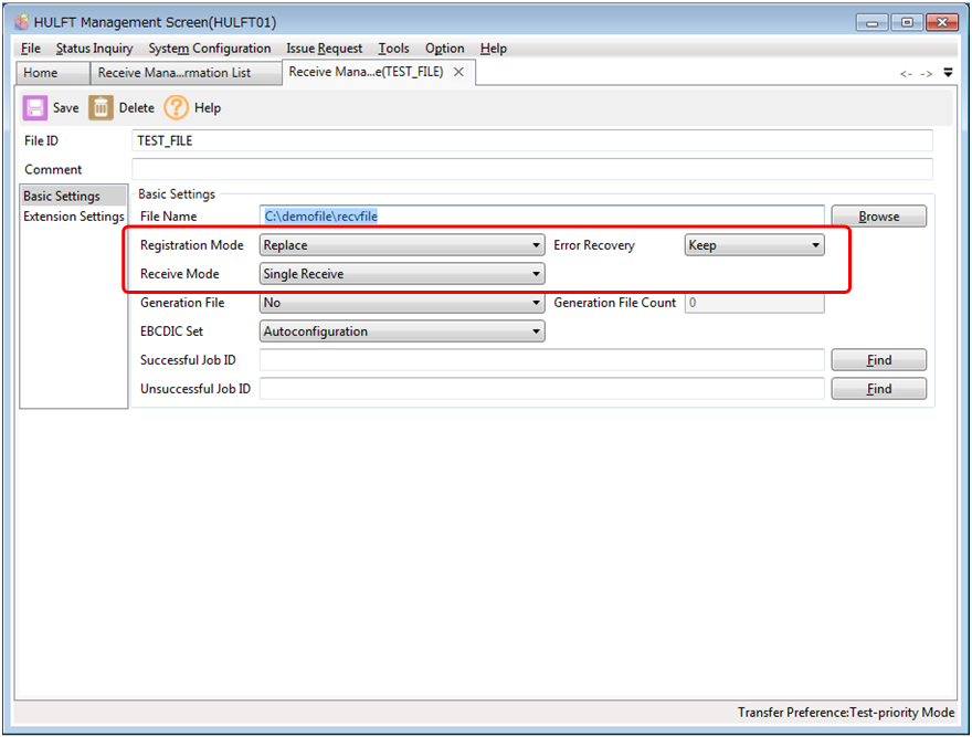 - - In the receive management information, for Registration Mode, either N (New Creation) or R (Replace) is specified.