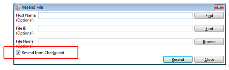 To use Checkpoint Resend File, select the Resend from Checkpoint check box.