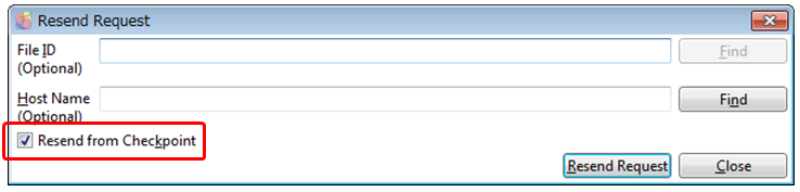 - You can use the Checkpoint Resend function to resume a Send File, and the Checkpoint Resend Request function to resume a Send Request.