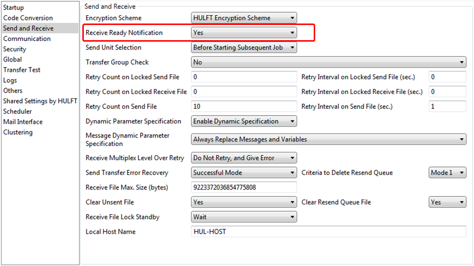 1. Under System Environment Settings, open Send and Receive, and set Receive Ready Notification to Yes.