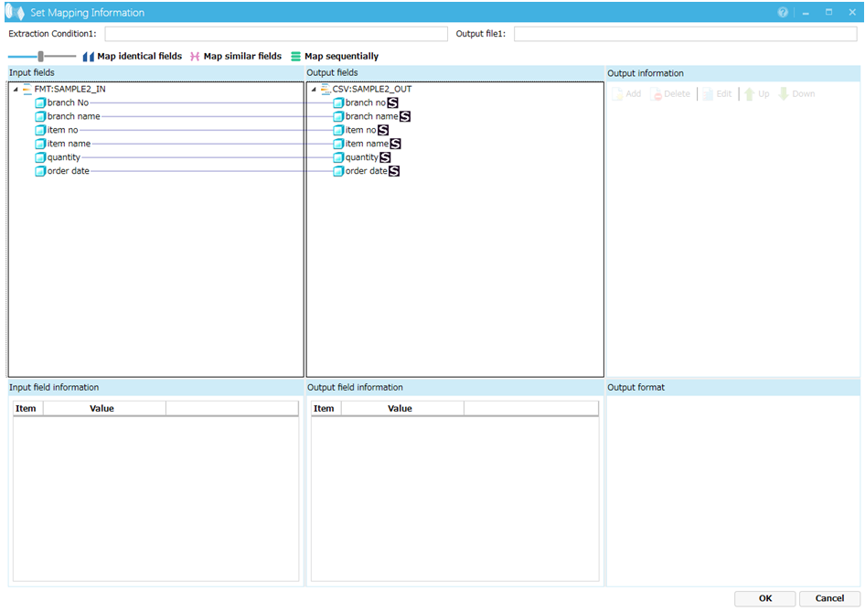 When you have finished mapping the fields, click the OK button to register the mapping information.