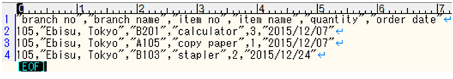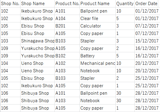 Store the above sample data in the folder C:\work\SAMPLE4\. (Save it with the file name in.xlsx.)