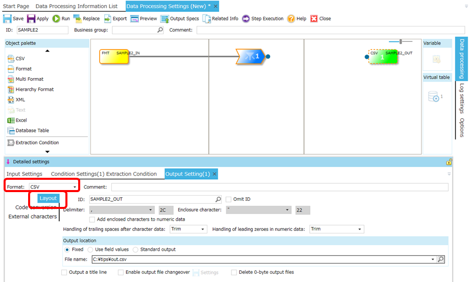 Connect the extraction condition and the output condition, and double-click the mapping icon.