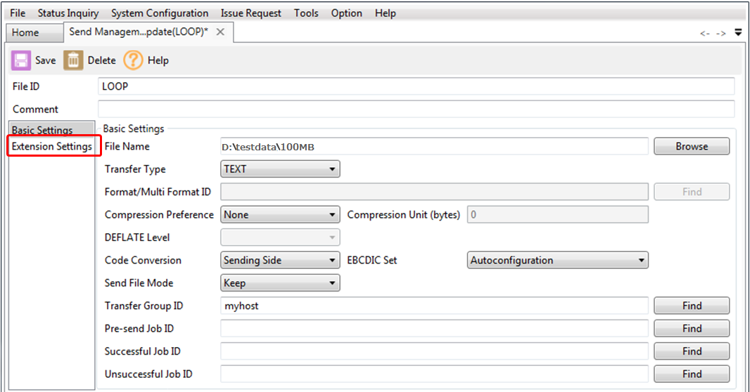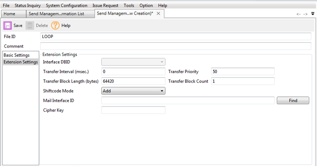 Open the Send Management Information screen, and click the Extension Settings tab.