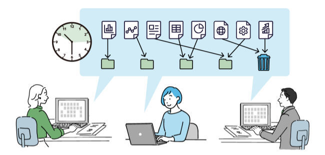 前回お話しした「出し切る」の次は、「選ぶ」というプロセスが待っています。こんまり®︎メソッドでは、この「選ぶ」というプロセスをするにあたって「ときめくかどうか」という基準を大切にしています。しかし、データ整理において「ときめくかどうか」を基準にするのは難しいですよね。「私はときめかないから」と言ってチームの誰かが重要なファイルを捨ててしまう…なんてこともありえます。ですので、データ整理をする際の「ときめくかどうか」に関しては、3つの基準で「選ぶ」ことをおすすめしています。その3つの基準とは、