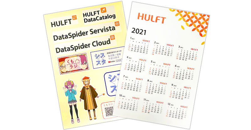 今年もお年玉プレゼントとしまして、アンケートにご回答いただいた方、抽選で20名様にシールカレンダー&HULFT/DataSpiderロゴステッカー+αをセットにしたHULFTグッズをプレゼントいたします。奮ってご応募ください。