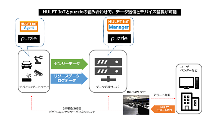 株式会社セゾン情報システムズ(本社:東京都豊島区、代表取締役社長:内田和弘、以下セゾン情報システムズ)とJIG-SAW株式会社(本社:東京都千代田区、代表取締役:山川真考、以下JIG-SAW)は、IoTデータのセキュアなデータ連携ソフトウェア「HULFT IoT」とデバイス自動監視サービス「puzzle®」を連携することで合意いたしました。