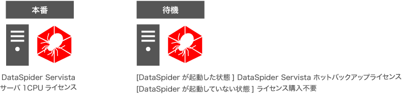 DataSpiderが導入されたマシンの予備機として用意し、DataSpiderが起動した状態での利用については、「ホットバックアップライセンス」が必要です。