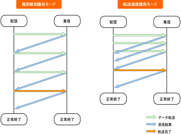 「異常検知優先モード」はデータを送って受け取り確認が返ってきたら次のデータを送ります。