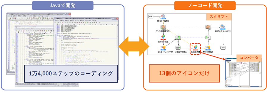 ドラッグ&ドロップによる直感的な操作によりユーザー部門でも開発可能