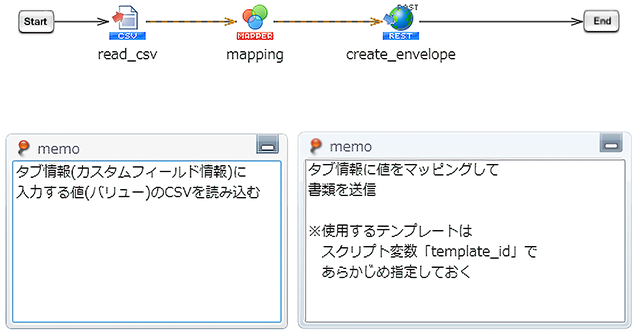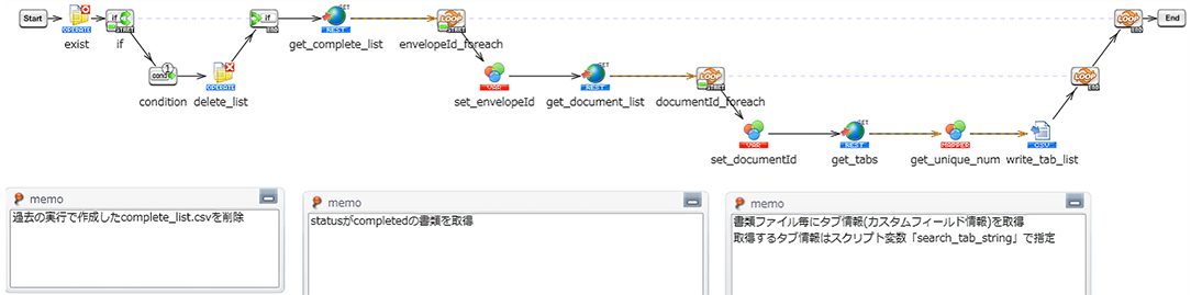 署名完了契約書リスト作成スクリプトで作成した署名完了契約書リストを読み込み、契約完了フローがまわっていない契約を対象に自動申請を行います。