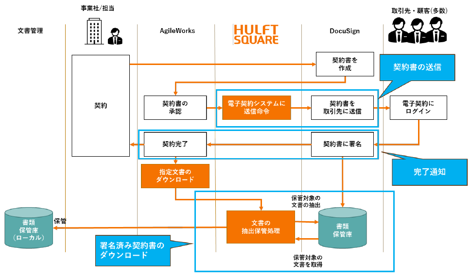 AgileWorksとDocuSign eSignatureを用いた電子契約業務における、次の処理を行います