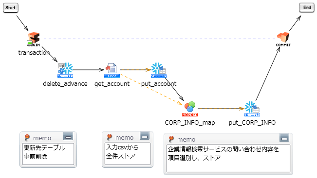 Salesforceから取得した企業情報のCSVファイルを読み取り、Snowflakeのテーブルに格納します。