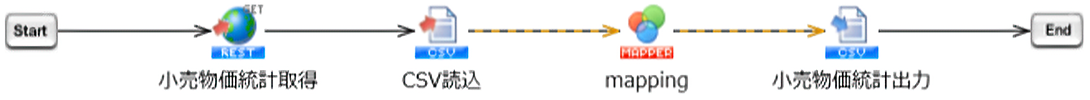 APIの取得結果は、二次加工しやすいようなCSV形式にHULFT Squareが変換した上で出力します。