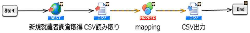 ダウンロードしたデータの保存先は、HULFT Squareストレージの「/OpenData/OpenData_No20_e-Stat_新規就農者調査取得」が設定されています。