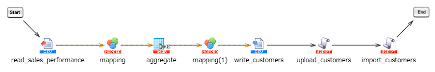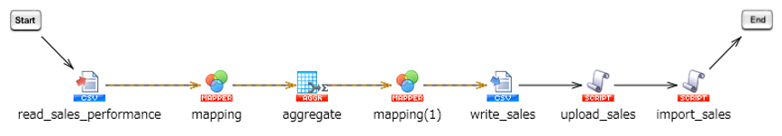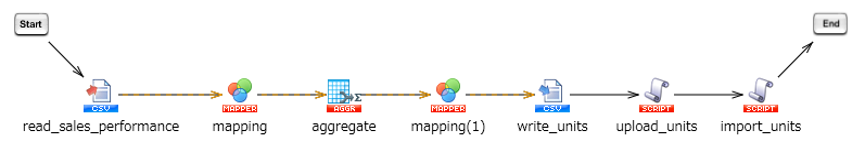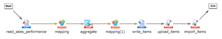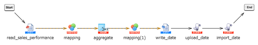 売上実績CSVファイルを各テーブルに分割してDr.Sum Cloudにインポートする処理を、実行します。