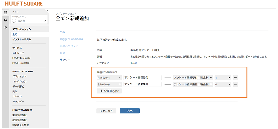 - トリガー条件が設定されたHULFT Transfer アプリケーションに紐づく集信管理情報の追加(削除は未対応)