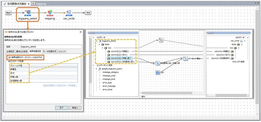 HULFT、DataSpiderと同様の操作が可能で、ノーコードでの開発環境を提供します。