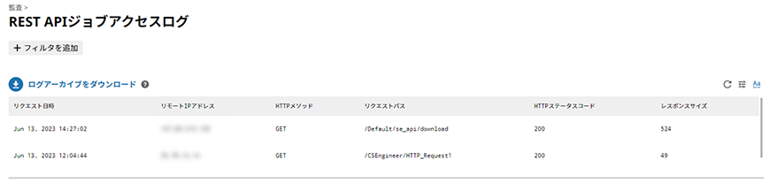REST APIジョブにアクセスされた記録をログとして表示可能になりました。