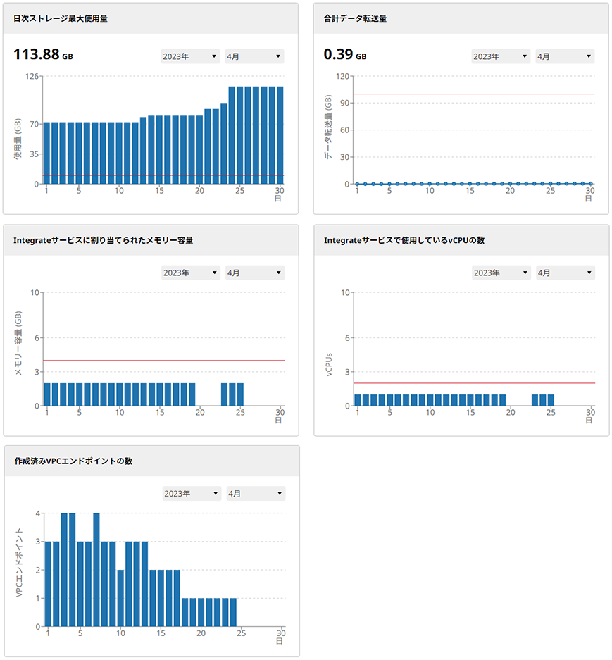 - Integrateサービスで使用しているvCPUの数