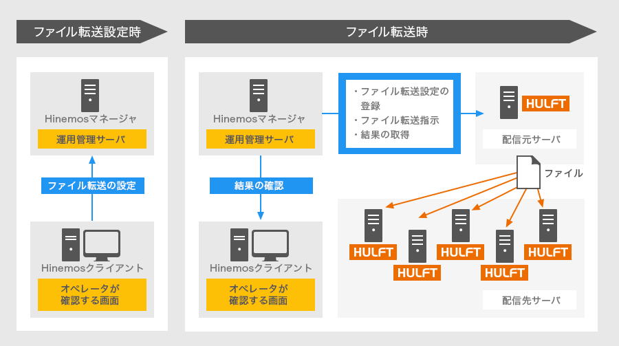 - Hinemosのジョブとして転送履歴・設定を一元管理