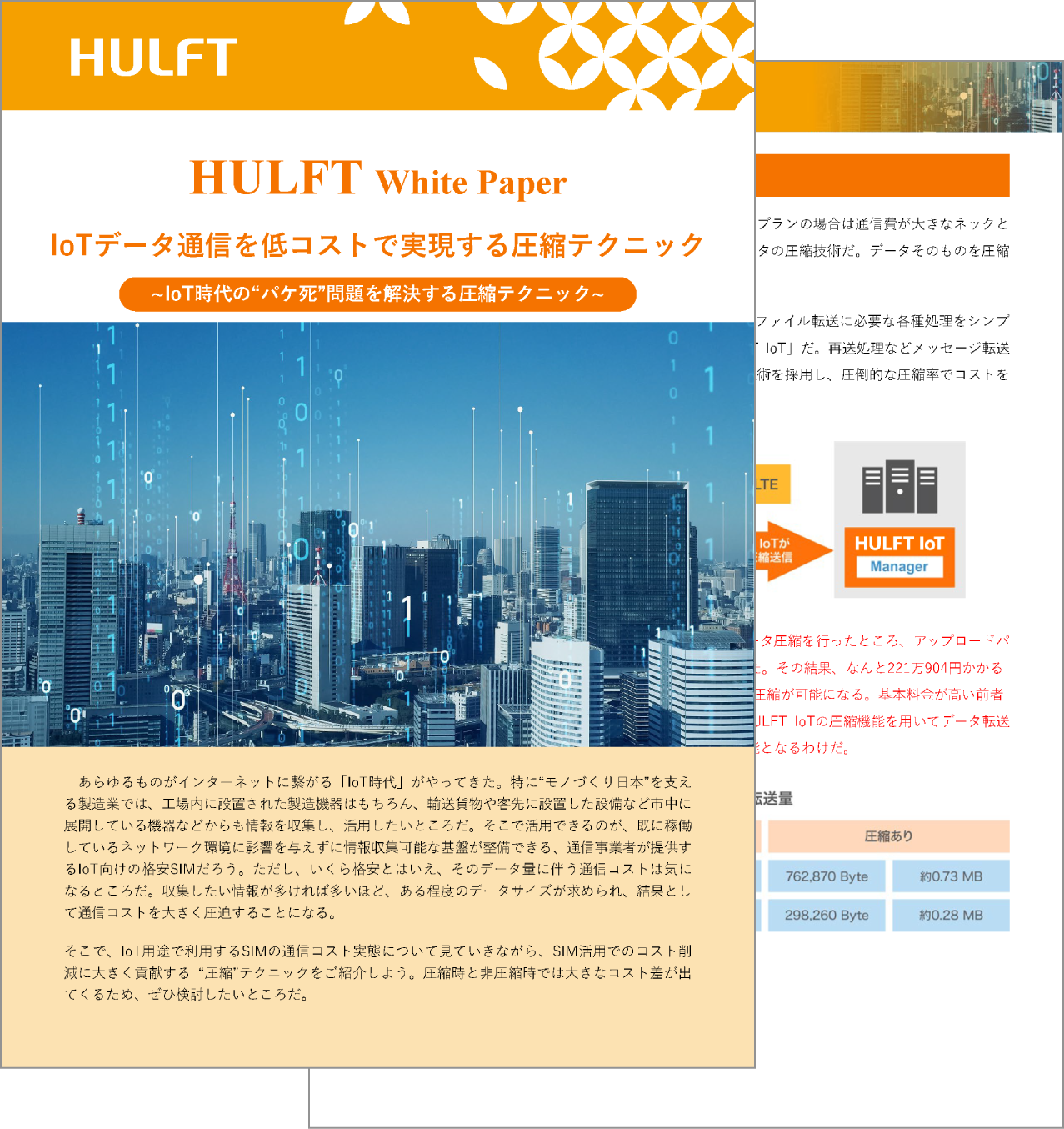 本ホワイトペーパーでは、HULFT IoTを実際に導入、通常時との比較で約50分の1