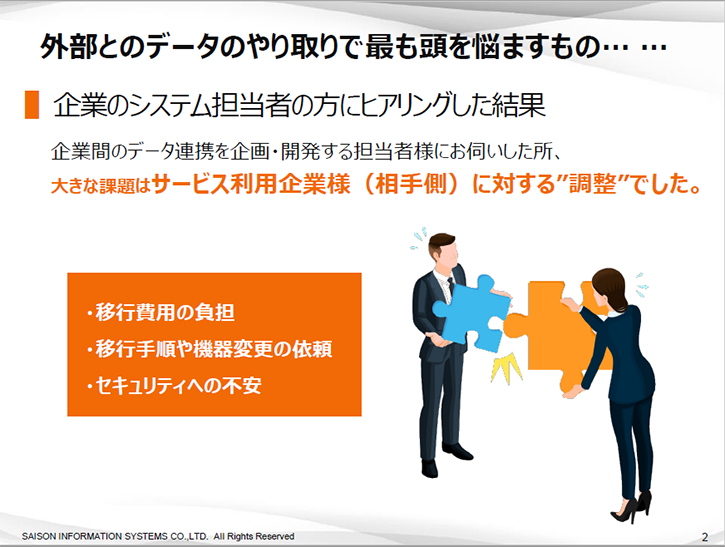 ご利用中の「HULFT-WebConnect」は、すべての対象取引先様のデータ授受にお使いですか? データ連携業務の担当者にお伺いしたところ、大きな課題はサービス利用企業様(相手側)に対する”調整”でした。