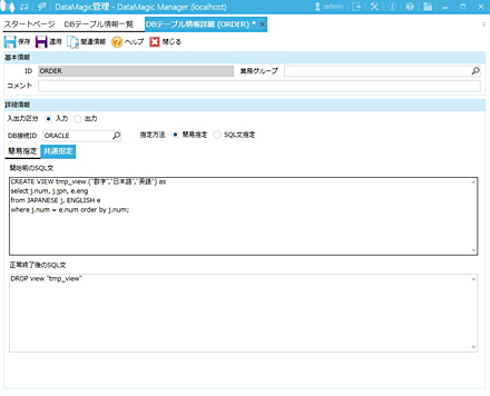 入力(照会:SELECT)、出力(挿入:INSERT、更新:UPDATEなど)ともに、テーブルを選ぶだけで簡単に設定できます。ユーザが指定したSQL文での入出力に対応し、INSERTに失敗した場合は続けてUPDATEを行うなど、詳細な設定も可能です。