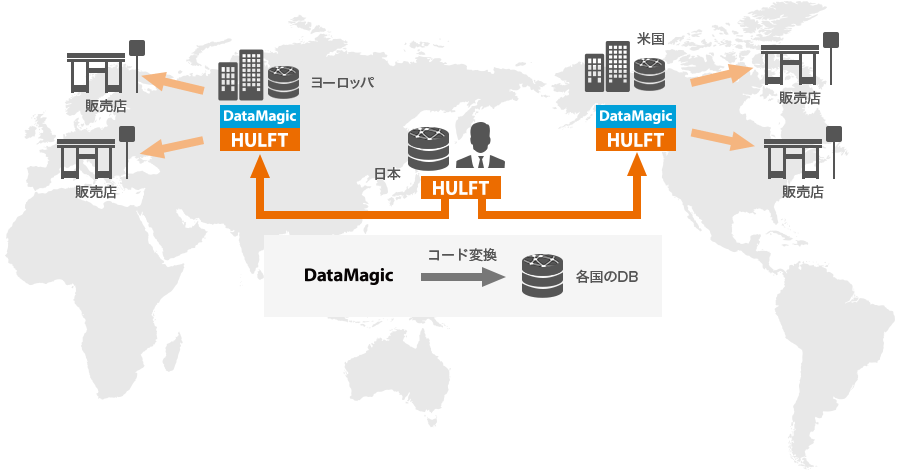 DataMagicは言語切り替え機能が備わっており、設定画面で日本語・英語の切り替えができます。日本と海外拠点間で発生するデータベース内の文字コードや商品コードの変換処理を、DataMagicを使って現地スタッフの方も英語で実施いただけます。