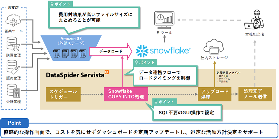 これによりSnowflakeへのデータロードを効率的に実行し、データ基盤にかかる費用を抑えた運用が実現可能となります。