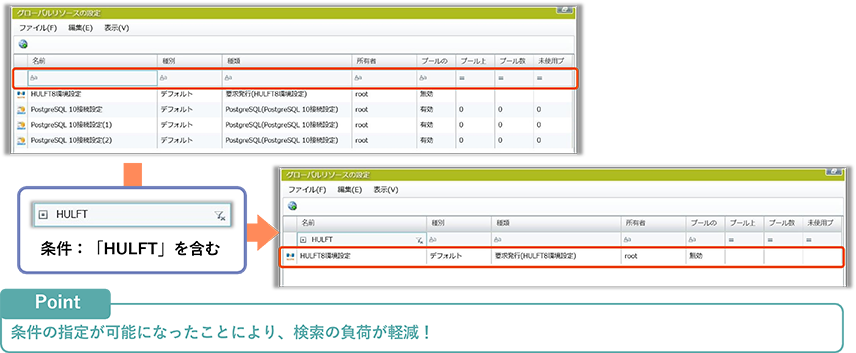 「グローバルリソースの設定」画面の一覧表示でフィルタをかけることが可能になりました。