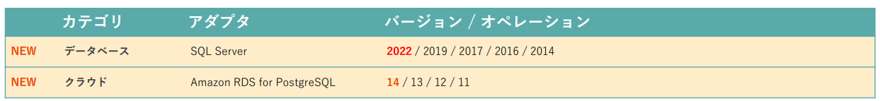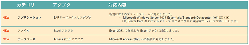- Microsoft SQL Server 2016 への接続に対応した SQL Server 2016 アダプタを追加しました。