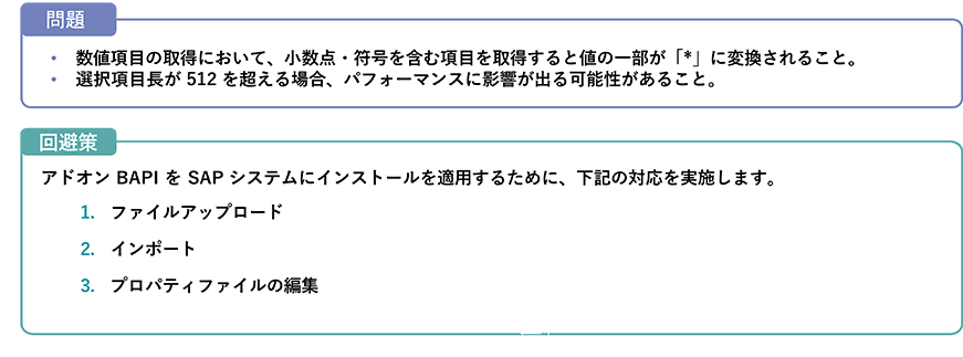 - テーブルデータ取得機能で、以下の問題を改善する方法を「SAP テーブルクエリアダプタセットアップガイド」の「2.4. 移送依頼のインポート手順」項に記載しました。