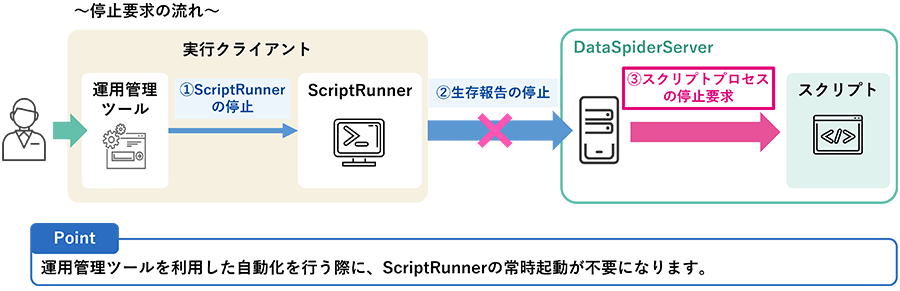ScriptRunner が停止した際に、DataSpiderServer がスクリプトプロセスの停止要求を行う機能を追加しました。