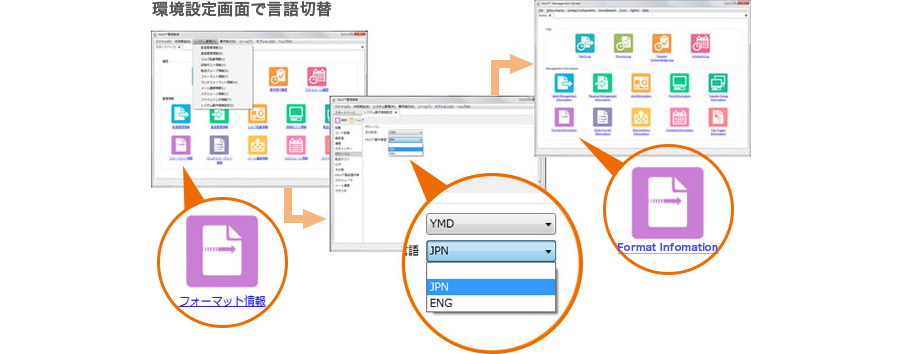 HULFT8は1パッケージで日本語、英語、中国語の言語切り替えが可能※