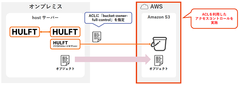 HULFT Cloud Storage Option を利用して転送を行う際に、アクセスコントロールリスト(ACL)の指定が可能となりました。これにより、Amazon S3のバケット所有者以外のアカウントから、HULFT Cloud Storage Optionを利用してアップロードされたオブジェクトの所有者を、バケット所有者へ自動的に引き受けることを可能が可能になります。