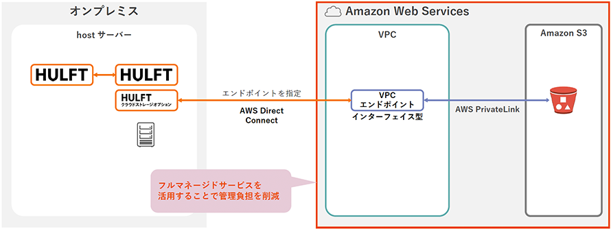 プライベート接続可能なVPCにAWS PrivateLinkを設置していただくことで、フルマネージドサービスのみでAmazon S3へプライベート接続することが可能となりました。