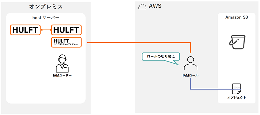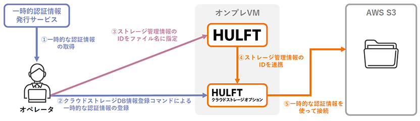 一時的な認証情報を使用した認証に対応することにより、HULFTクラウドストレージオプションに保持される認証情報は短い期限付きの認証情報が利用可能になります。これにより、HULFTクラウドストレージオプションからAmazon S3の有効な認証情報が流出するリスクを軽減出来ます。