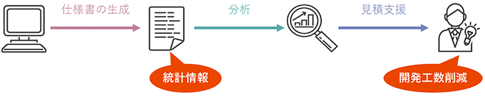 開発前にプロトタイプを作成しその統計情報から最終的な工数の見積もりをする際や、開発後に統計情報を分析することで次回開発時に精度の高い工数見積りをする等、開発工数削減に貢献します。