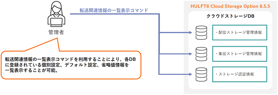 転送関連情報の一覧表示・取得コマンドを使用することで、登録されている値を一覧で出力することが可能です。これにより情報取得が容易になり、管理者の負荷が軽減されます。