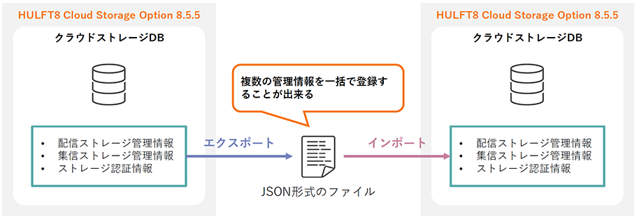 クラウドストレージDB上の各種情報(配信ストレージ管理情報、集信ストレージ管理情報、ストレージ認証情報)をインポート/エクスポートが可能になりました。これにより、管理情報の移行とバックアップが可能になりました。
