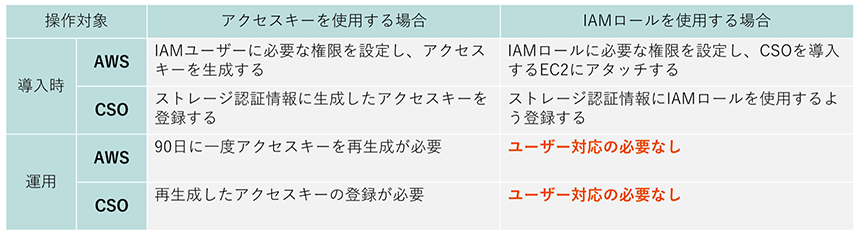 EC2上でクラウドストレージオプションを運用しているユーザが、AWSが推奨する IAMロールを使用したアクセス許可の管理を行うことが可能となるため、ユーザはより平易に運用設計を行うことができます。
