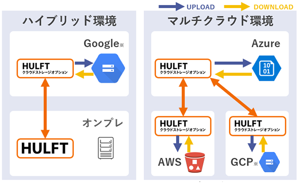 従来の使い慣れたHULFTの設定作業や運用方法はそのままに、クラウドサービス上のオブジェクトストレージに対するファイル転送を可能にするHULFTのオプション製品「HULFTクラウドストレージオプション」が、新たに「Google Cloud Storage」との間の双方向のファイル転送にも対応しました。