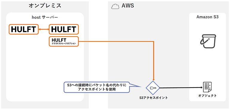 HULFT Cloud Storage Option を利用して転送を行う際に、Amazon S3 Access Points へのアクセスが可能となりました。本機能を使用することで、標準のS3 アクセスポイント にアクセスすることが可能になります。
