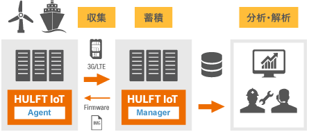 HULFT IoTのデータ収集・配布機能により、上りのIoT、下りのIoT双方の自動化を実現。