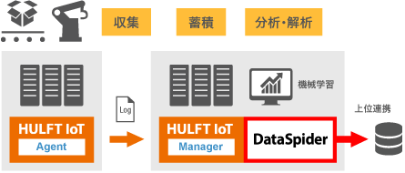 データ収集、連携、見える化をHULFT IoTとDataSpiderの組み合わせで実現。ノンプログラミングで予知保全のしくみ構築ができた。