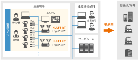 各拠点間のデータ連携をHULFT IoTでノンプログラミング開発を実現。開発コストを低減し、生産性向上へ貢献。