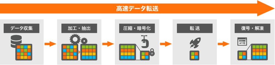 HULFT IoT EdgeStreamingを利用することで、IoTデバイスから集めたデータを加工し、必要な部分のみ転送することが可能です。また圧縮転送により、帯域が狭い環境でもファイル容量を抑えての転送が可能です。